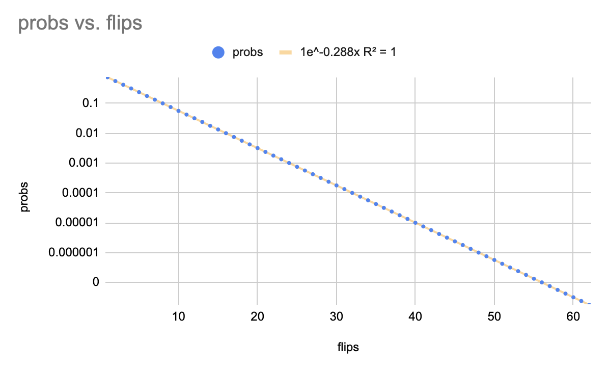 Looking familiar (log scale alert!). Dragging it out to 62 flip-pairs: