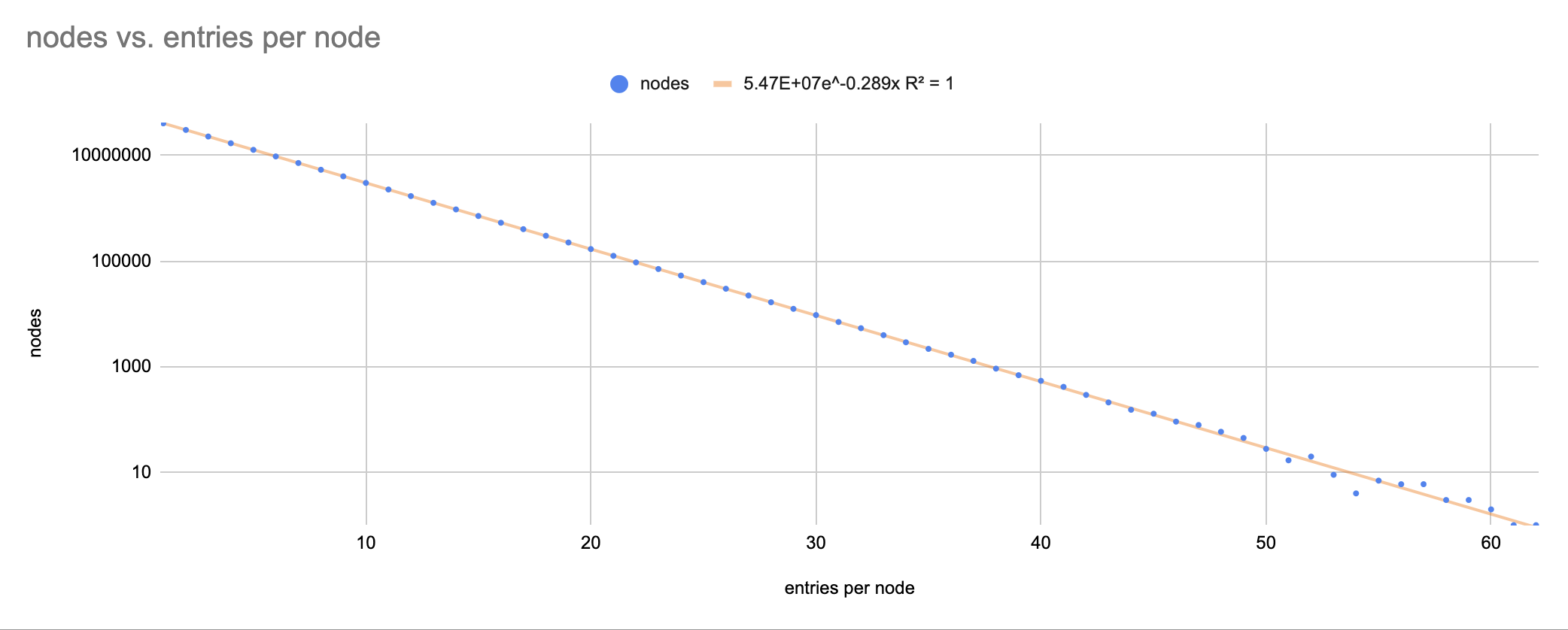 Okay okay! look at that exponential fit! beauty! decay! Is -0.288 our magic number? Did we just hit a fifty-entry-wide node on our first go??