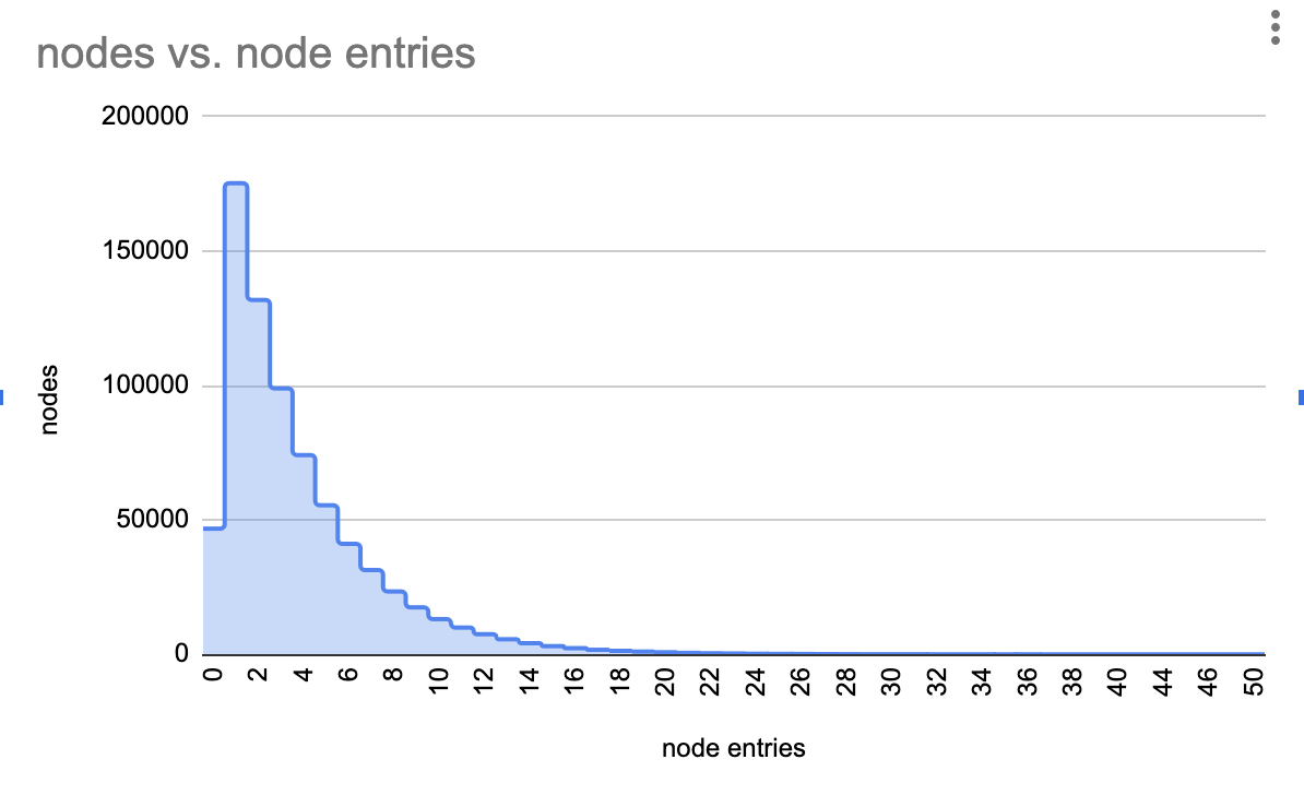 We just processed 163 million MST nodes, and observed one with 62 entries. How likely was that?